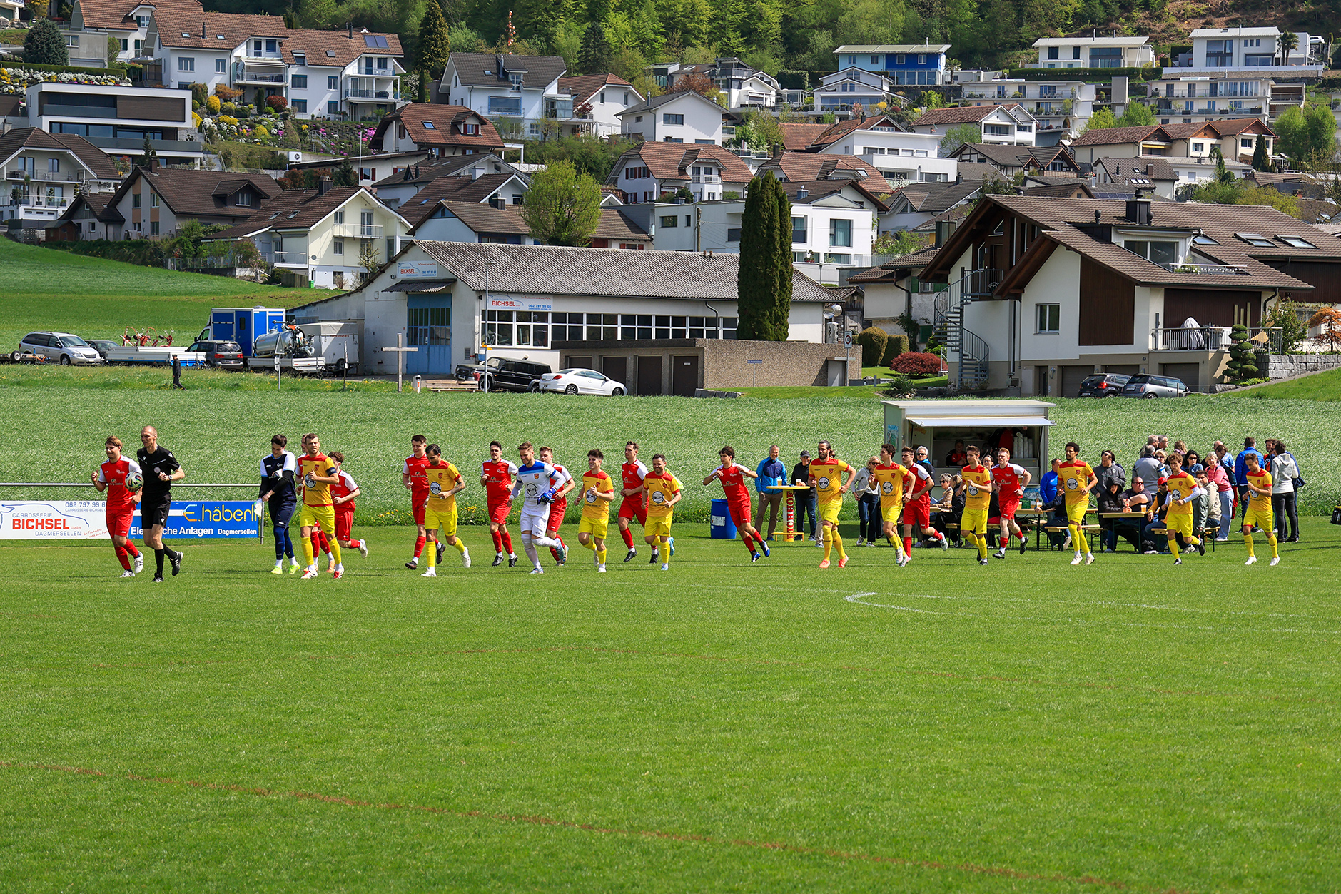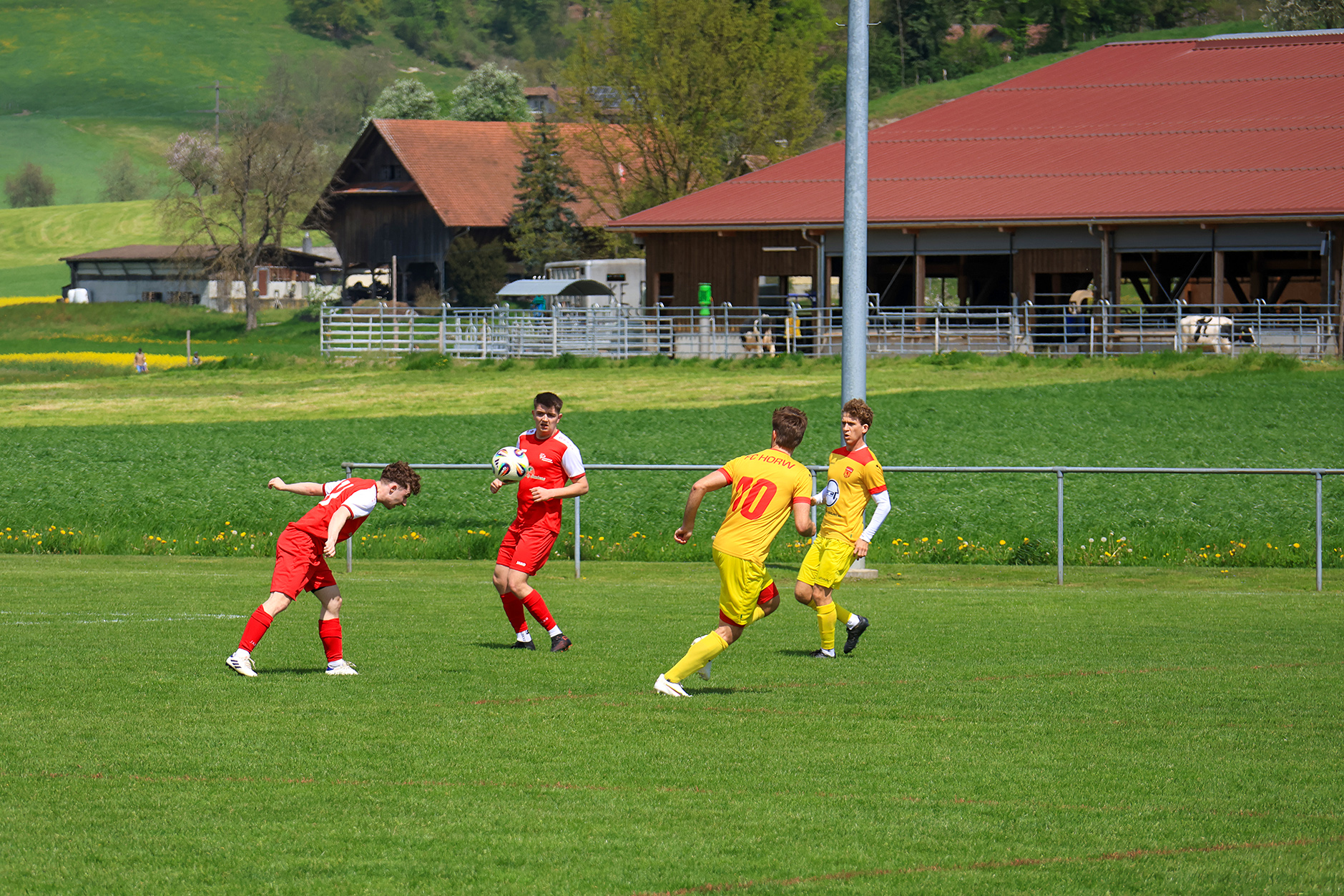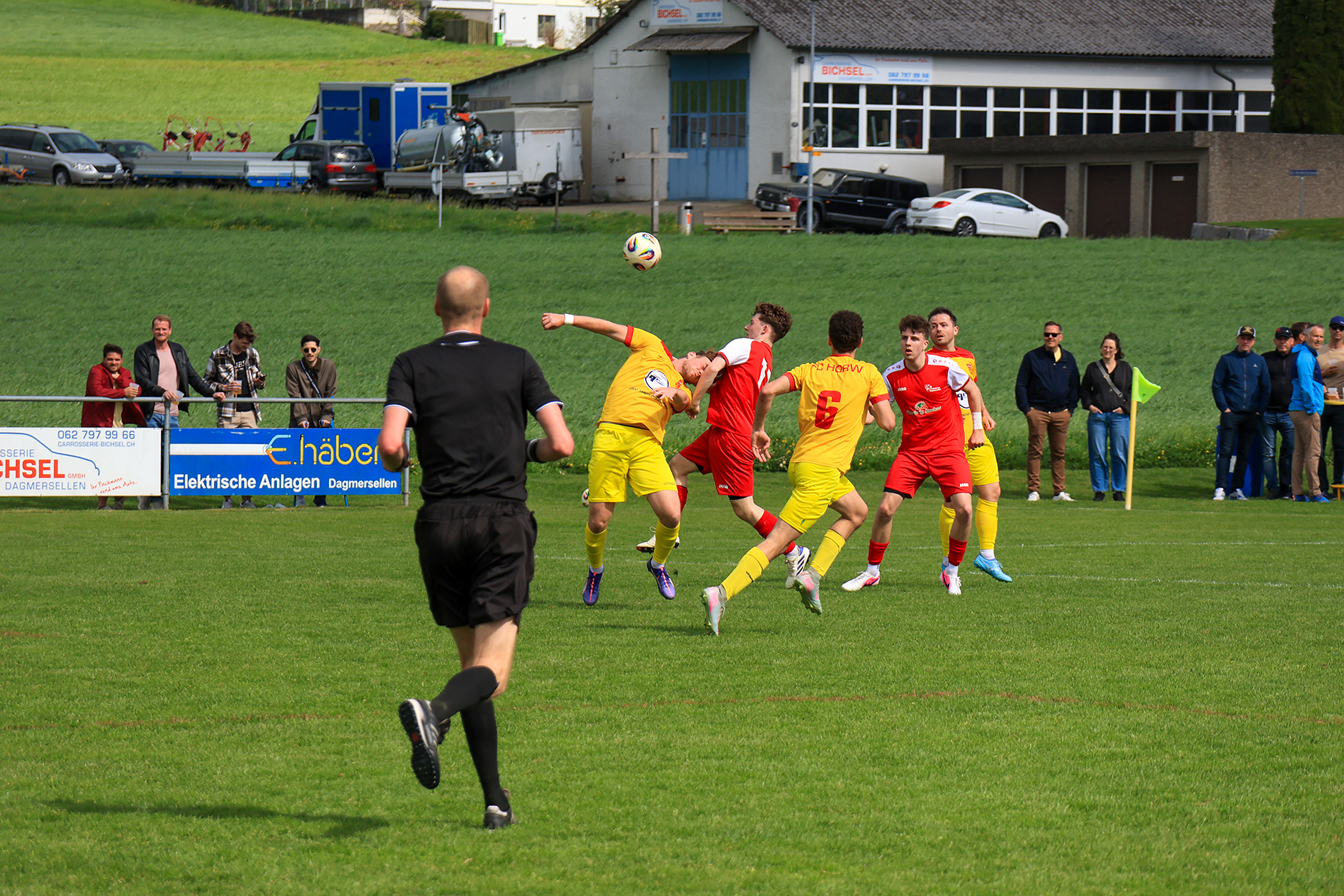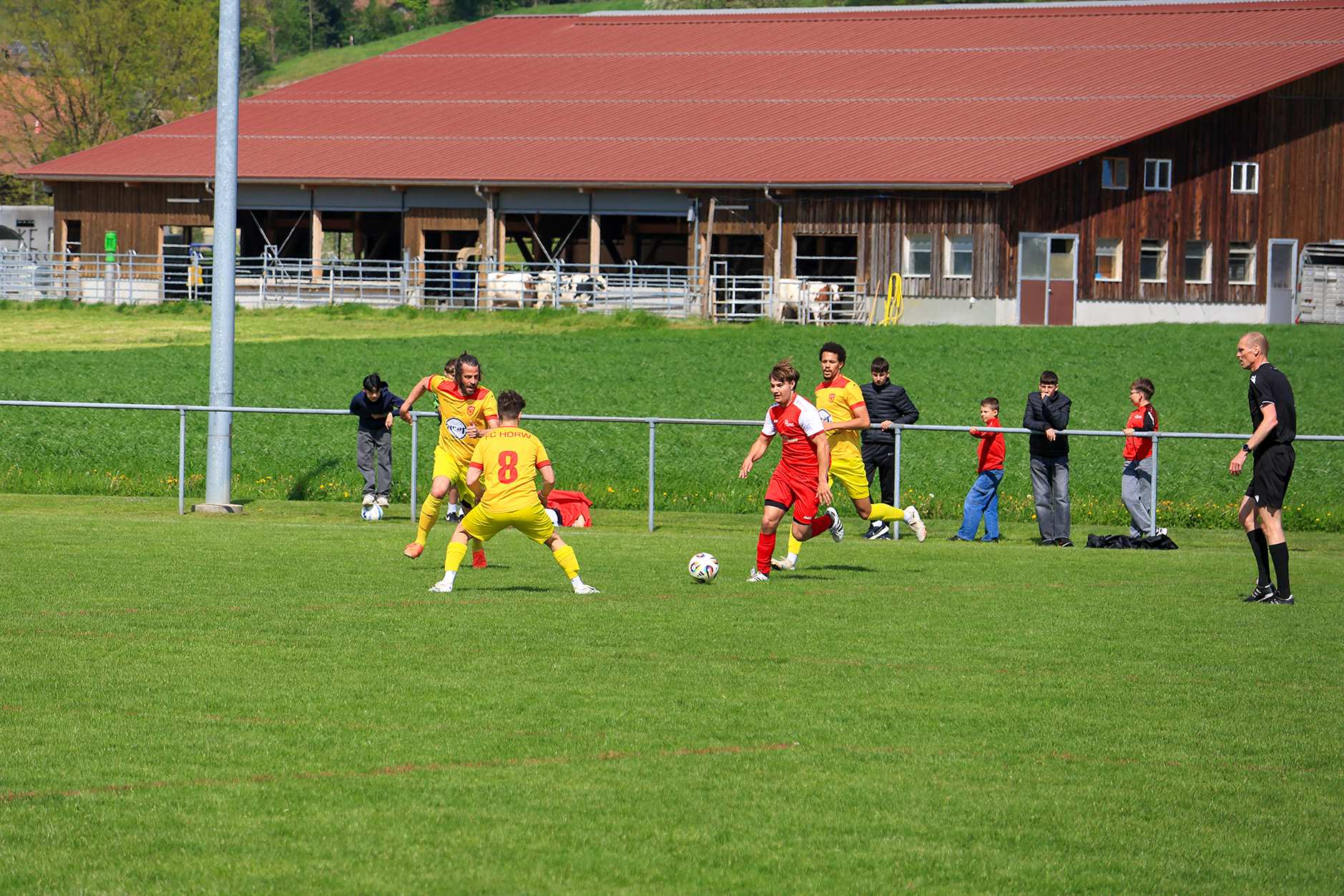 Bei windigem, aber sonnigem Wetter entwickelte sich auf der Chrüzmatt zunächst eine zähe Partie. Beide Teams agierten aus einer sicheren Defensive, Torchancen blieben während mehr als zwanzig Minuten aus. Dagmersellen begann eher zurückhaltend und überliess Horw den Ballbesitz, ohne jedoch in Bedrängnis zu geraten. Erst nach und nach fand das Heimteam besser ins Spiel und suchte vermehrt den Weg nach vorne.