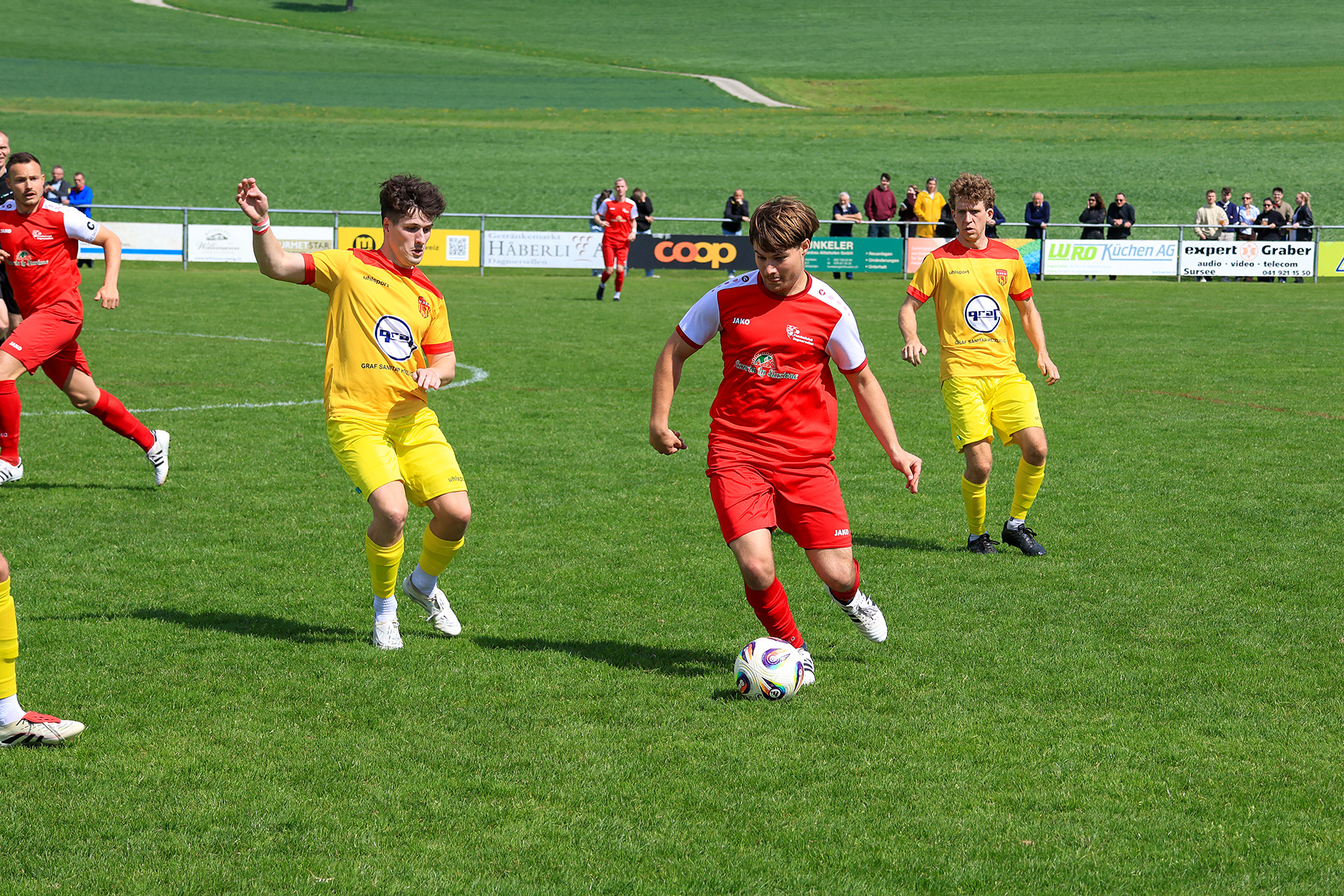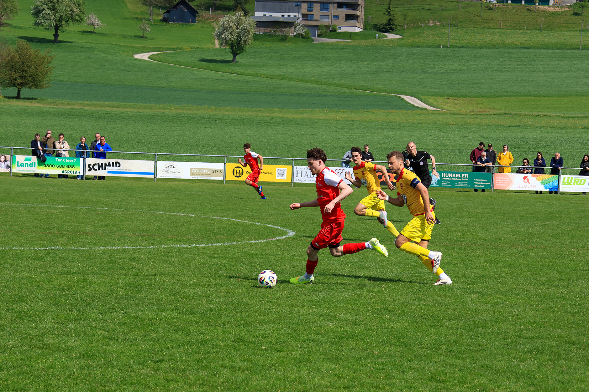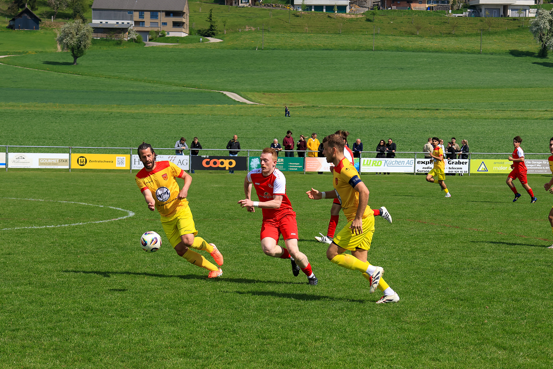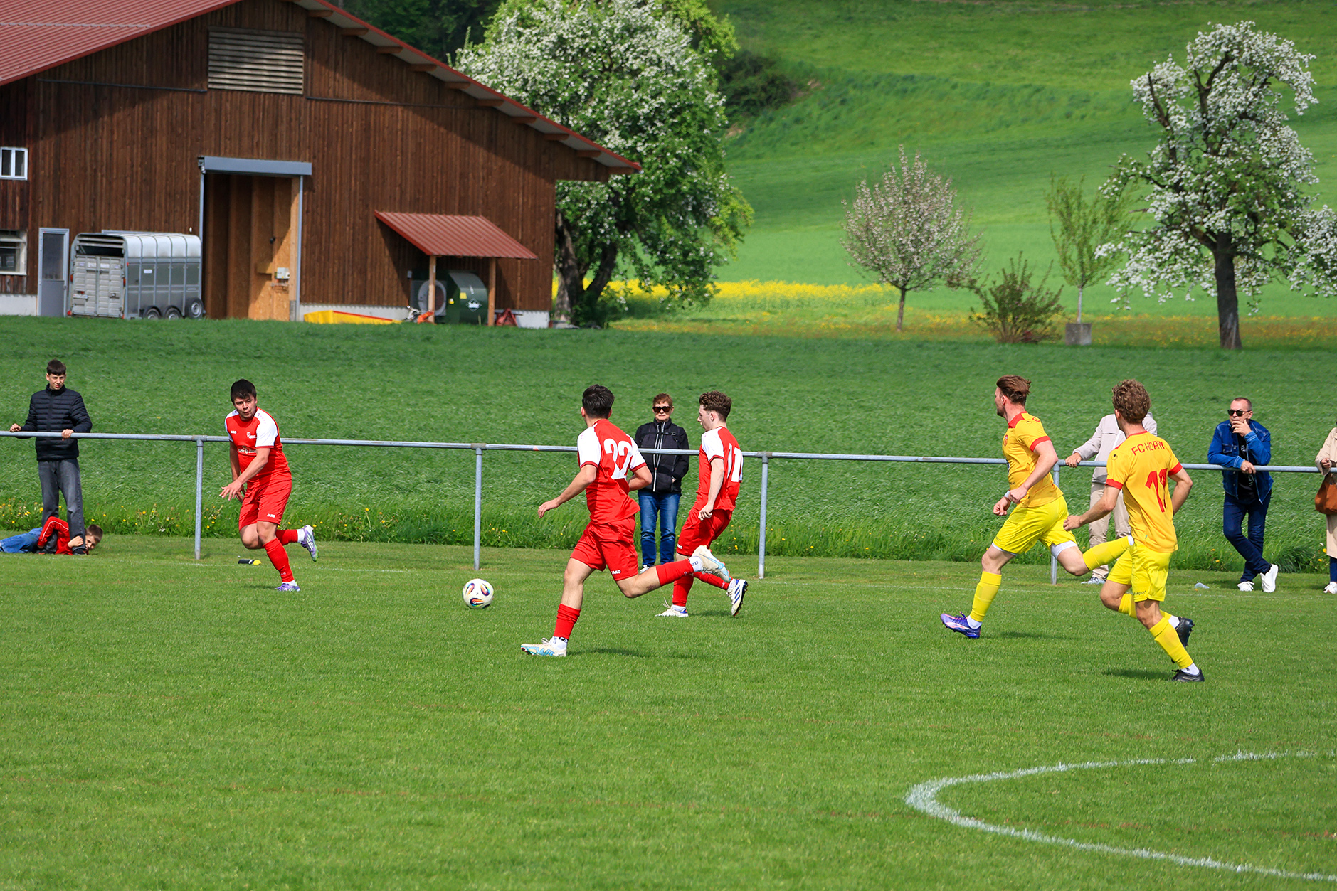Bei windigem, aber sonnigem Wetter entwickelte sich auf der Chrüzmatt zunächst eine zähe Partie. Beide Teams agierten aus einer sicheren Defensive, Torchancen blieben während mehr als zwanzig Minuten aus. Dagmersellen begann eher zurückhaltend und überliess Horw den Ballbesitz, ohne jedoch in Bedrängnis zu geraten. Erst nach und nach fand das Heimteam besser ins Spiel und suchte vermehrt den Weg nach vorne.