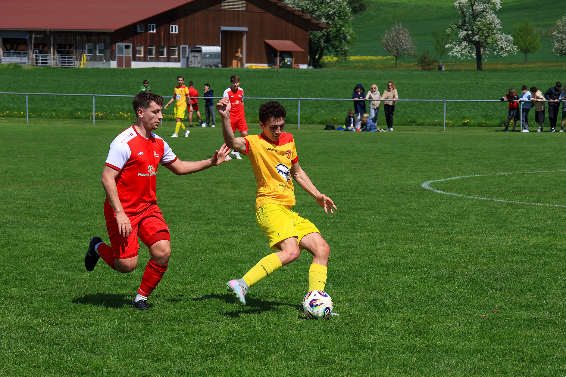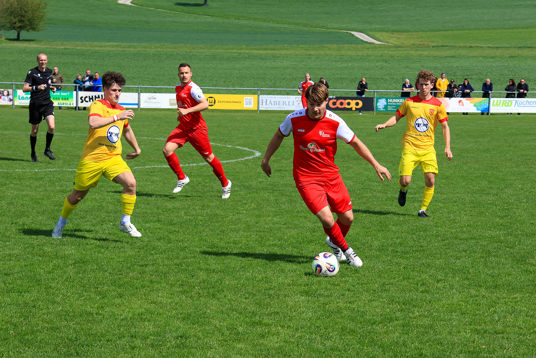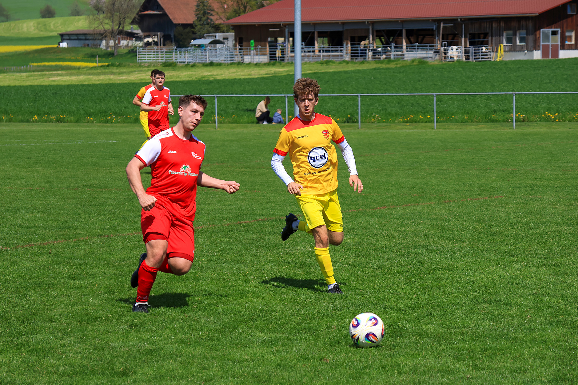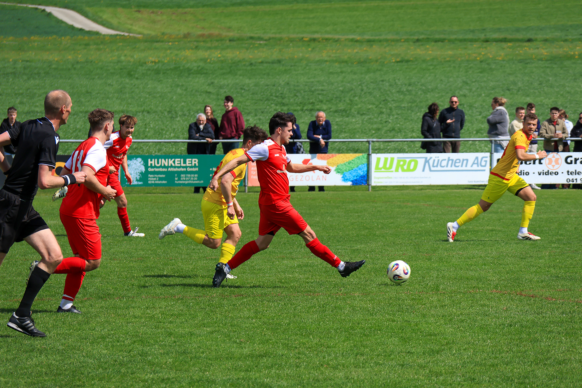 Bei windigem, aber sonnigem Wetter entwickelte sich auf der Chrüzmatt zunächst eine zähe Partie. Beide Teams agierten aus einer sicheren Defensive, Torchancen blieben während mehr als zwanzig Minuten aus. Dagmersellen begann eher zurückhaltend und überliess Horw den Ballbesitz, ohne jedoch in Bedrängnis zu geraten. Erst nach und nach fand das Heimteam besser ins Spiel und suchte vermehrt den Weg nach vorne.