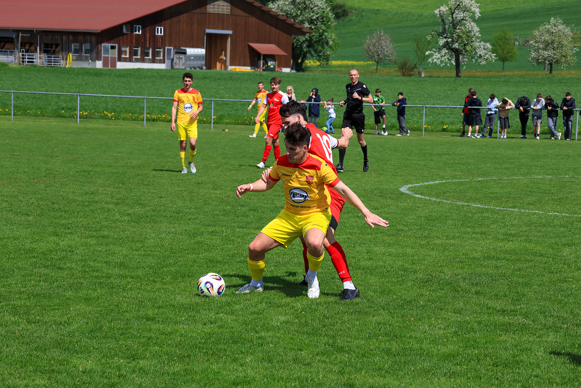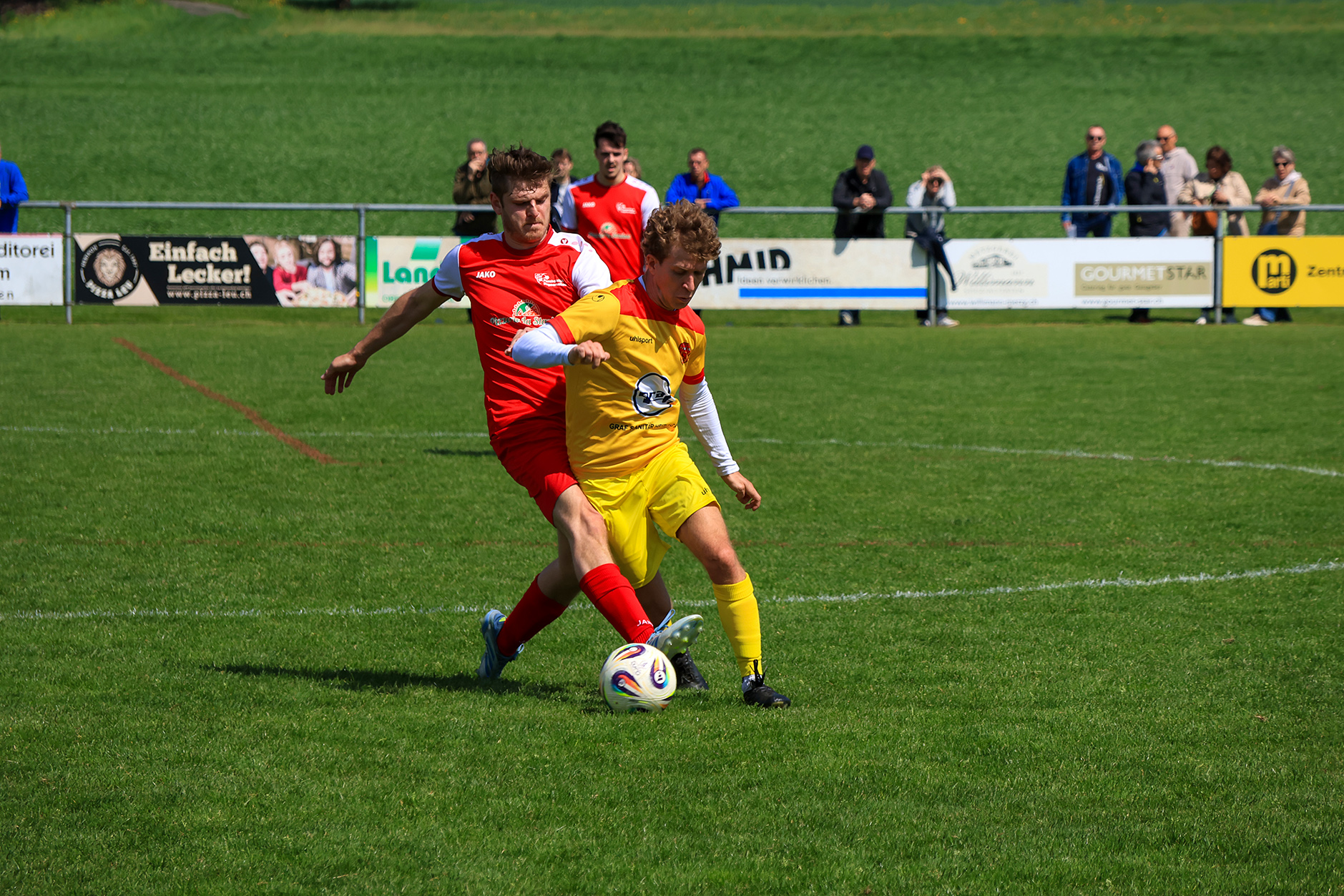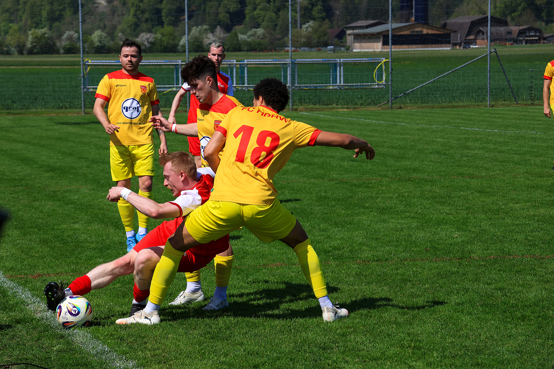 Auch nach dem Seitenwechsel blieb das Spiel lange ausgeglichen. Dann gelang dem Gastgeber die Führung: Fischer setzte sich über den Flügel durch und bediente Scheidegger. Diesmal klappte es – sein eher harmloser Abschluss liess Gästekeeper Minder zum Entsetzen seiner Mitspieler zwischen den Beinen ins Tor passieren.