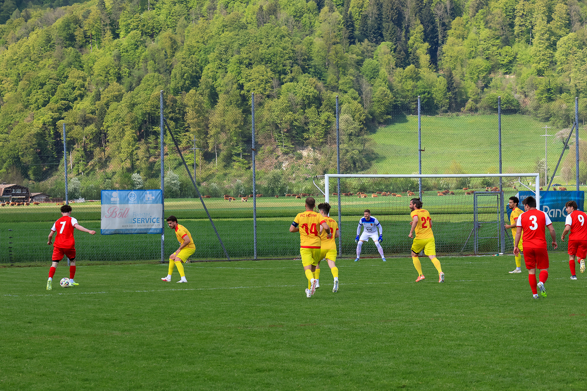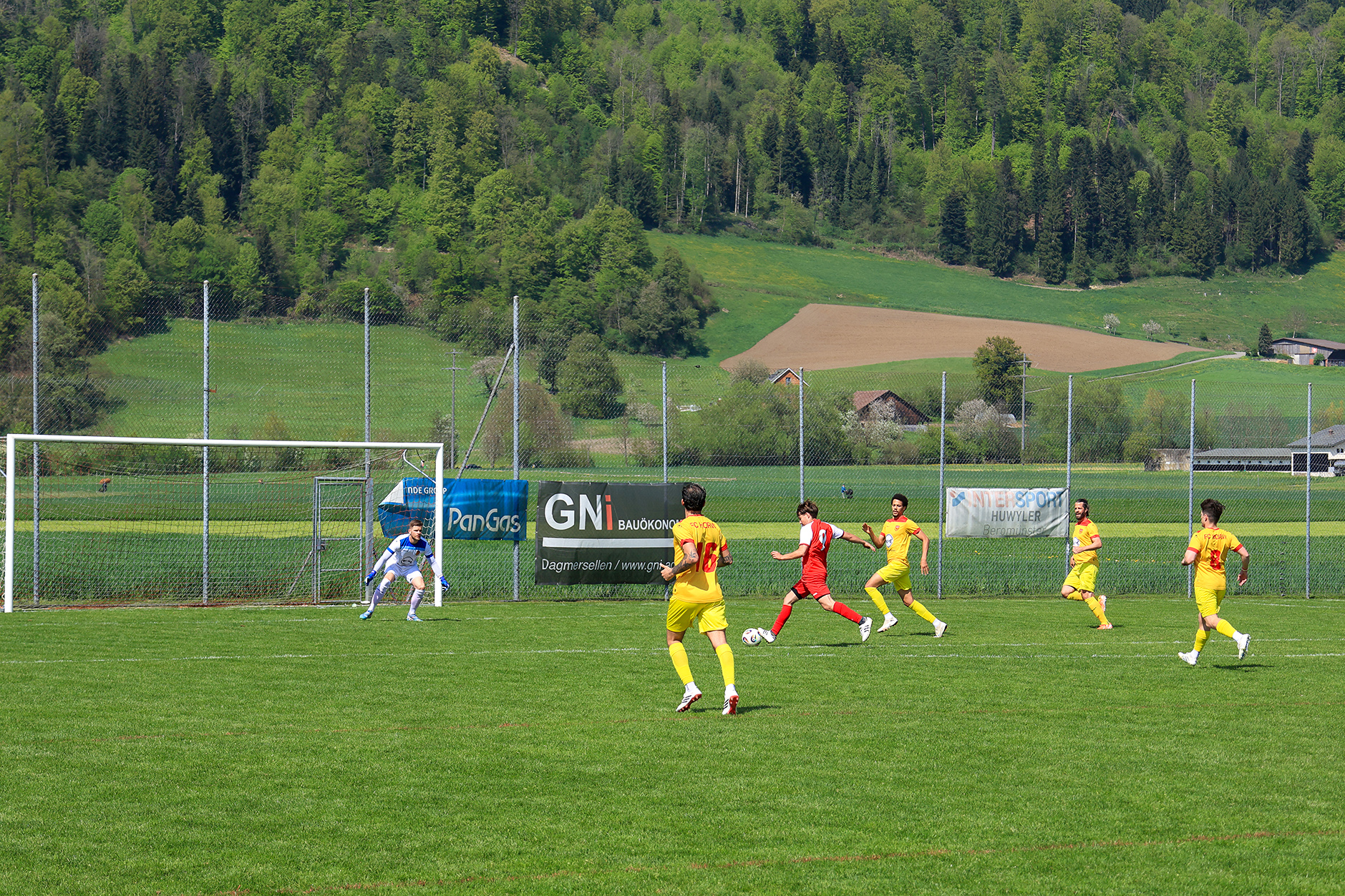 Horw reagierte und übernahm nun mehr Spielanteile, während Dagmersellen auf Umschaltmomente lauerte. Ein Freistoss aus rund zwanzig Metern stellte Accola vor Probleme, sein Abpraller sprang an die Latte und ins Aus. In der 75. Minute fiel dann der Ausgleich: Eine unglückliche Klärung landete direkt in den Füssen von Nando Ming, der aus kurzer Distanz mit einem satten Flachschuss vollstreckte.