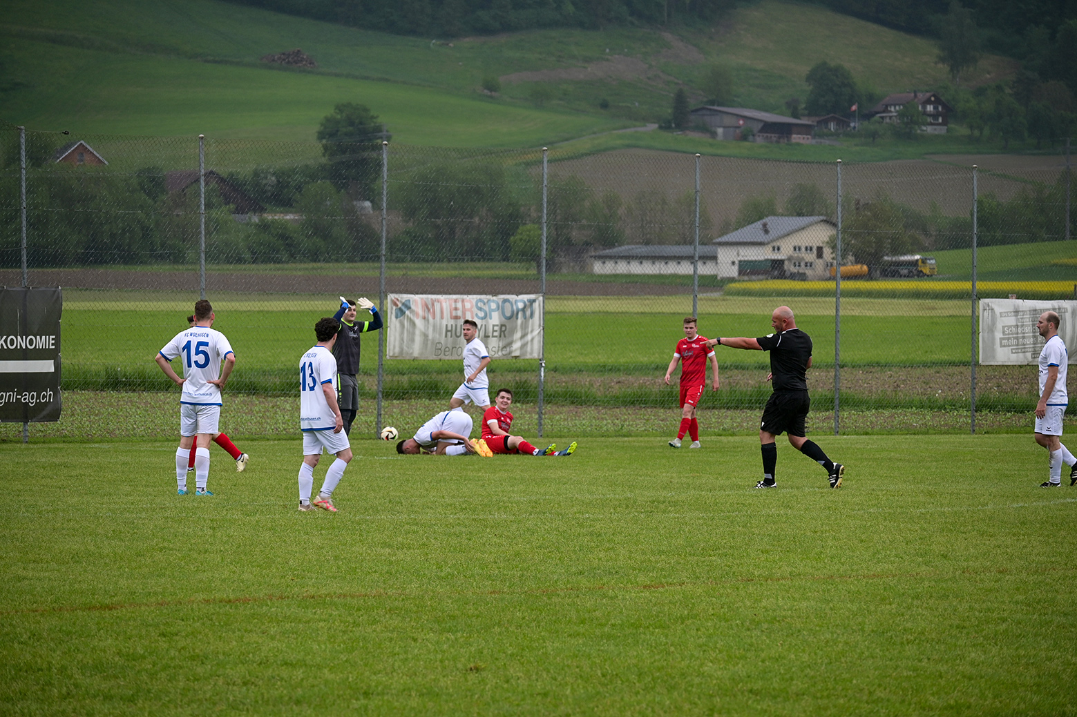 Jetzt brachen bei Wolhusen alle Dämme. Janik Sommer lupfte den Ball nur zwei Minuten später sehenswert über Wicki zum 5:1 ins Netz, ehe Scheidegger für Fivian auflegte, der das halbe Dutzend voll machte. Und es sollte noch schlimmer kommen für die Gäste: Livio Rölli lancierte Livio Scheidegger mit einem präzisen Steilpass, der von Adrian Brunner mit einer klaren Notbremse gestoppt wurde. Dem souverän leitenden Schiedsrichter Roger Mattmann blieb keine andere Wahl, als die Rote Karte zu zücken. Den fälligen Freistoss zirkelte Fivian wunderschön über die Mauer zum 7:1 Endstand. Im einsetzenden Regen wurde Wolhusen regelrecht zerlegt.