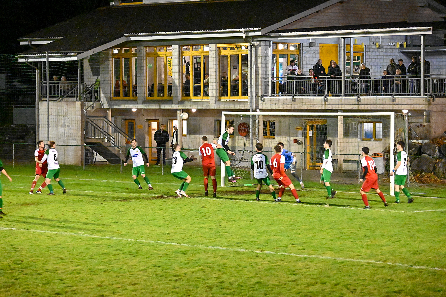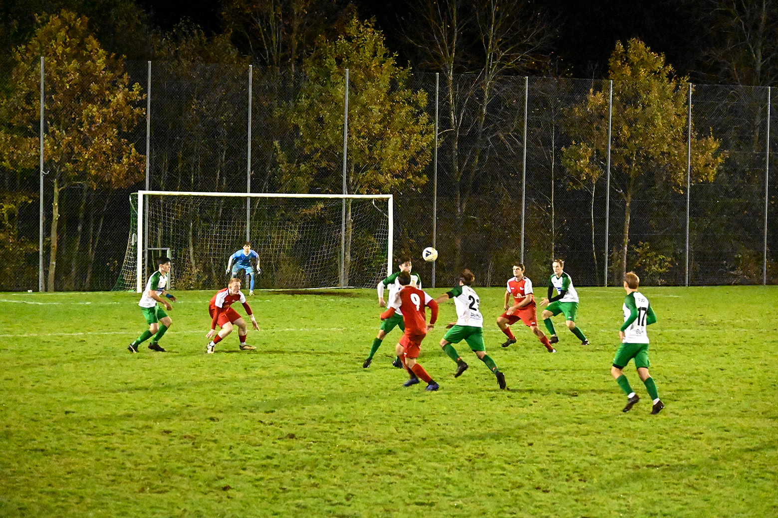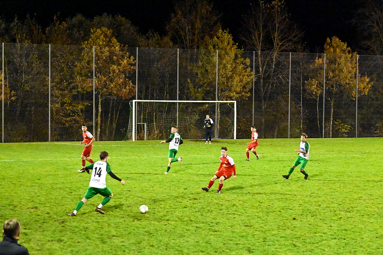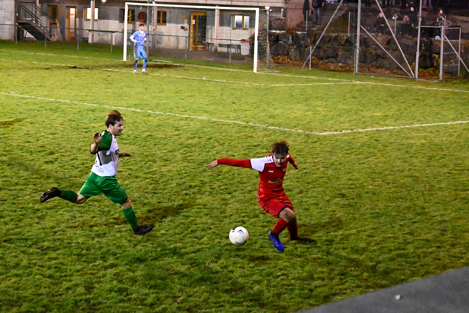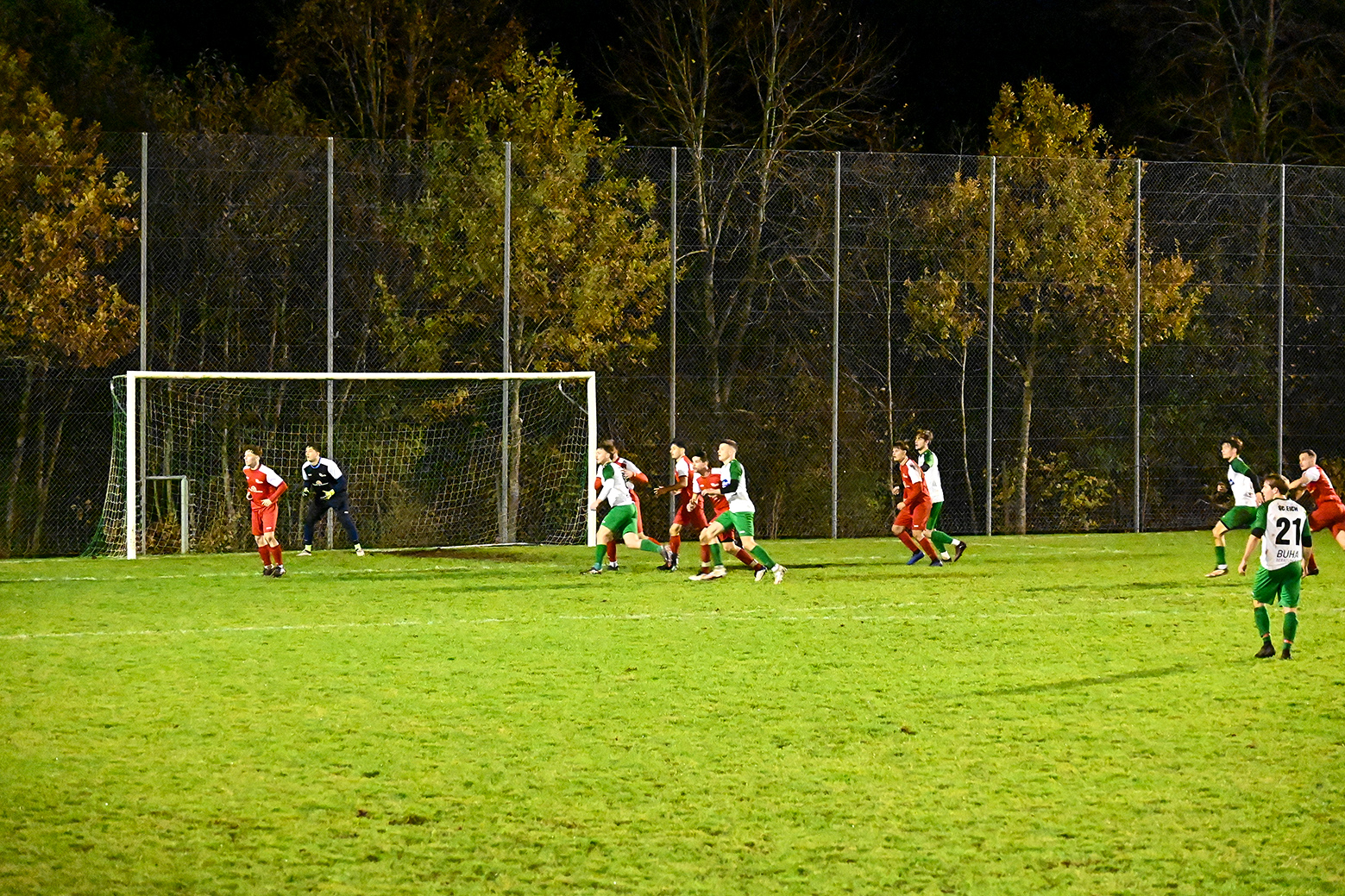 Nach dem Seitenwechsel wurde das Spiel zunehmend zerfahren. Viele hohe Bälle, harte Zweikämpfe und der noch tiefer werdende Boden prägten das Geschehen. Mit dem einsetzenden Regen verwandelte sich der Platz endgültig in ein Schlachtfeld. In der 61. Minute gab es den ersten Aufreger, als eine Flanke von Eichs Küng immer länger wurde und auf die Lattenoberkante klatschte – Glück für die Gäste.