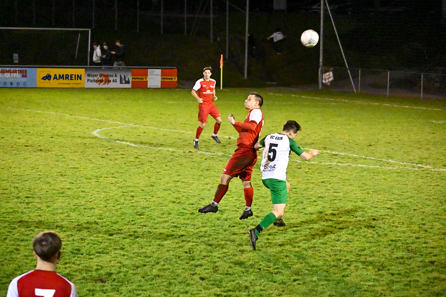 Der FC Dagmersellen wollte im letzten Vorrundenspiel beim SC Eich den Schwung aus dem Kantersieg gegen Ruswil mitnehmen. Auf dem kaum bespielbaren Platz war jedoch von Fussballkunst kaum etwas zu sehen. Die Wiggertaler zeigten über weite Strecken die klar bessere Leistung und hatten Spiel und Gegner sicher im Griff. Am Ende vergaben sie jedoch den verdienten Sieg durch zwei vermeidbare Standardsituationen – ein bitteres Ende eines eigentlich guten Auftritts. Die Winterpause kommt nun zum richtigen Zeitpunkt, um Kräfte zu sammeln und den etwas enttäuschenden Abschluss zu verarbeiten.