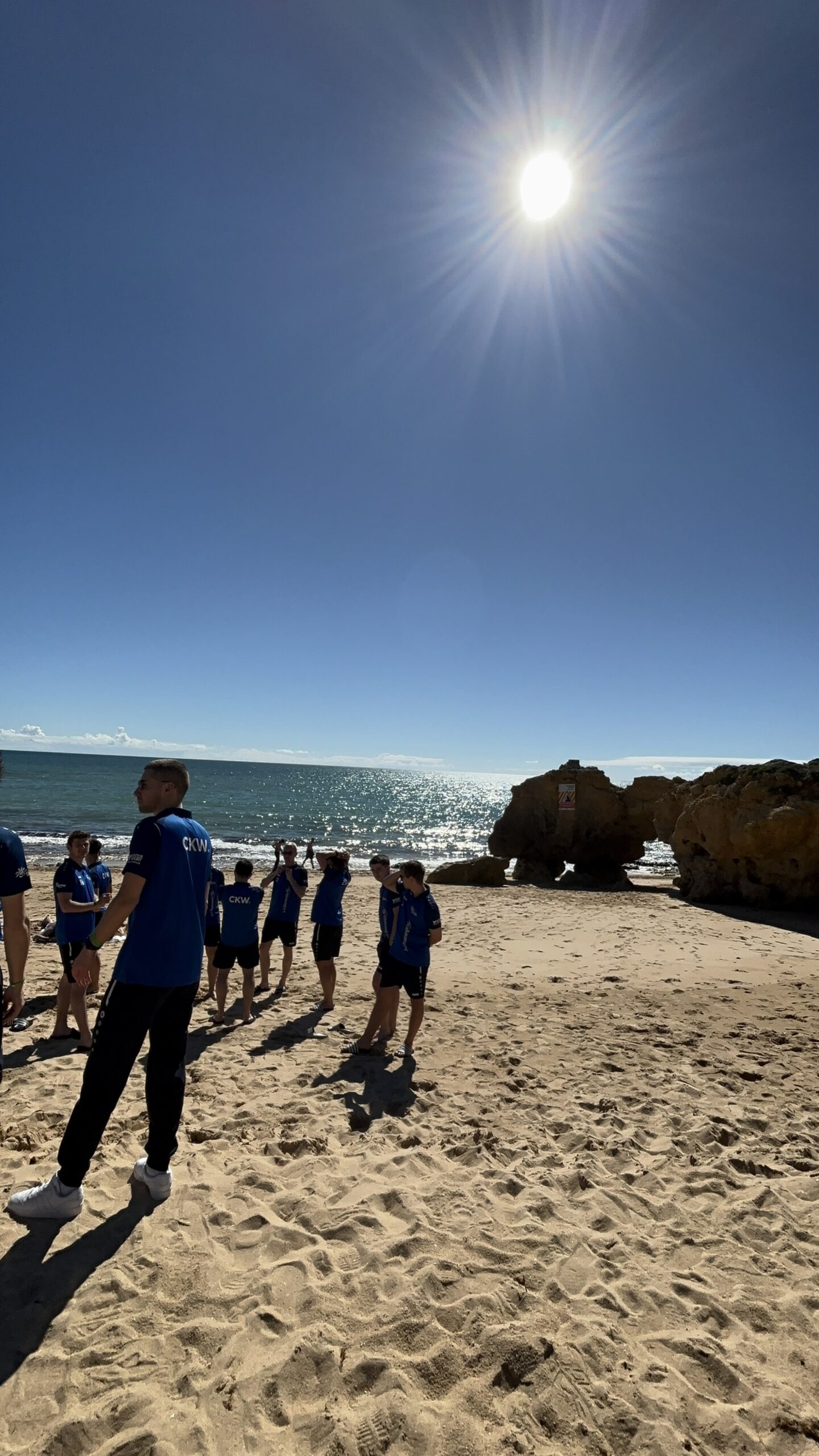 Von Anfang an war klar: Hier wird hart gearbeitet! Bei strahlendem Sonnenschein starteten wir mit den ersten Trainingseinheiten, die uns technisch und taktisch forderten. Doch wer viel trainiert, braucht auch Pausen – und wo könnte man die besser verbringen als am traumhaften Sandstrand der Algarve? Zwischen Sprints und Passübungen gönnten wir uns immer wieder eine kleine Auszeit mit Blick aufs Meer.